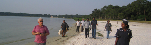 Professor Tom Baum (far left) on one of the Ssese Island beaches