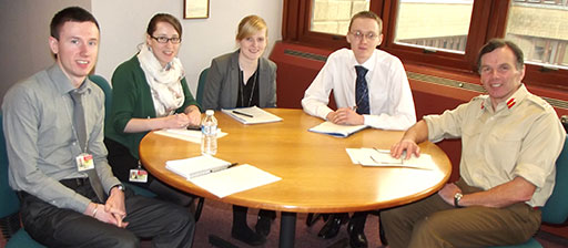 left to right - Mark Robertson, Laura Hall, Clare Ferguson, Chris Wood and Major General Andrew Gregory