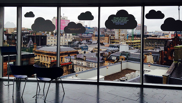 The installation is located on the 6th floor viewing platform of the Lighthouse, Mitchell Lane, Glasgow, and is open until December 20, 2014.
